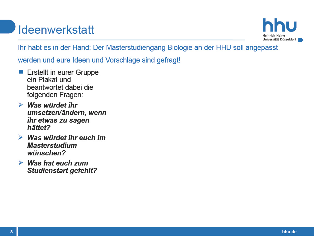 Das Orientierungs-Tutorium im Wintersemester soll den neuen Masterstudent*innen in erster Linie dabei helfen, ihre neue Universität, ihre neue Studienstadt und ihre Mitstudierenden kennenzulernen.